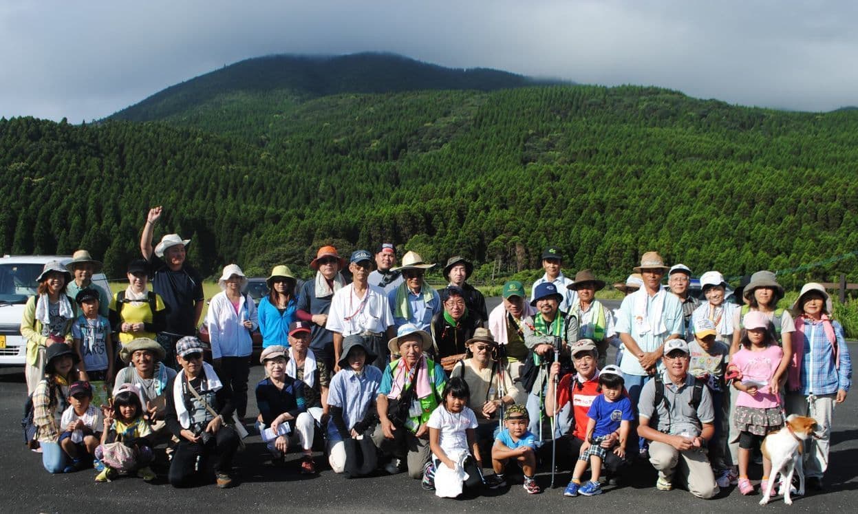 串間のフットパスの歴史は2015年(平成27年)に市木の石波地区を回遊するコースを設定し、8月8日午前8時8分8秒にスタートし50数名(下画像)の参加で行ったのが最初です。