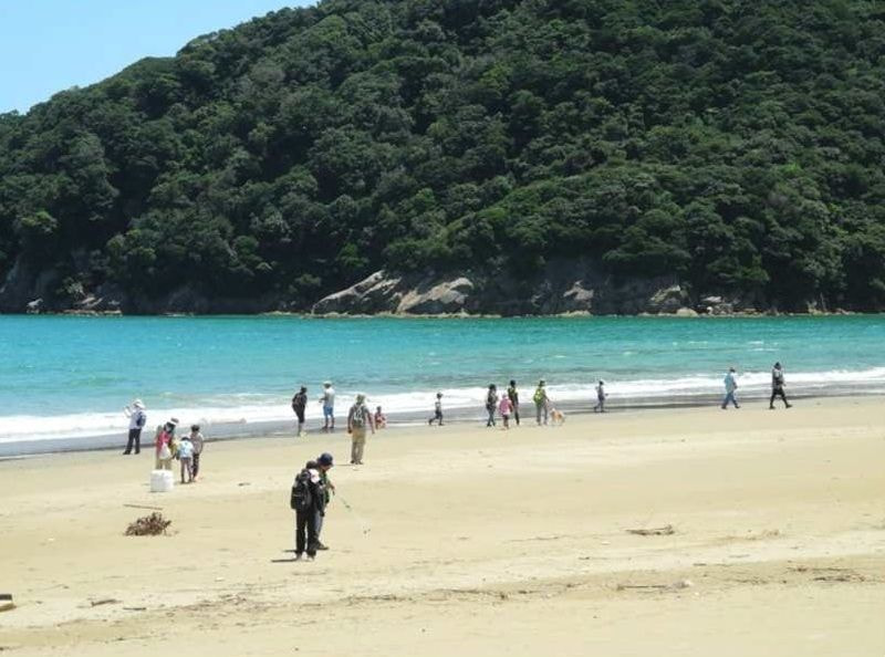 幸島対岸の砂浜を歩く